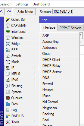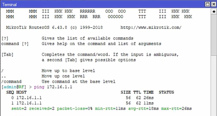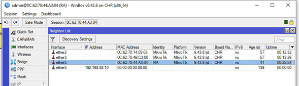 Podemos acceder a los routers vecinos desde la mikrotik RA dándole clic derecho e ingresando por MAC Telnet