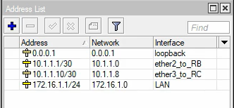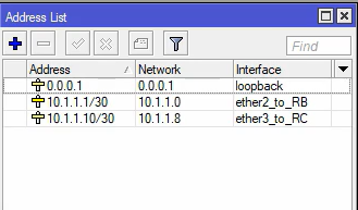 add address=10.1.1.1/30 interface=ether2_to_RB network=10.1.1.0