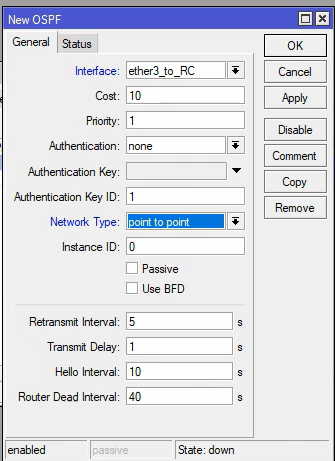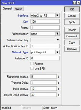 add cost=100 interface=ether4_to_RC network-type=point-to-point