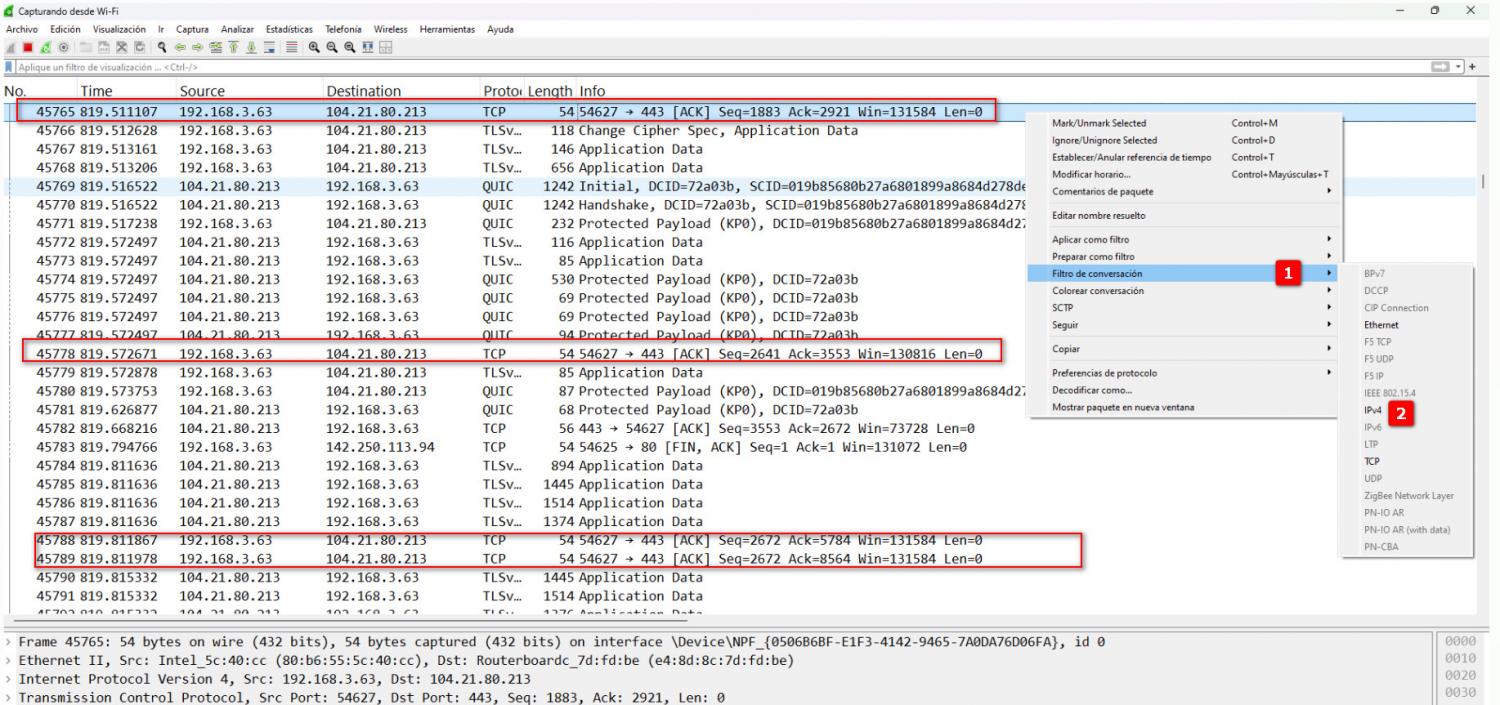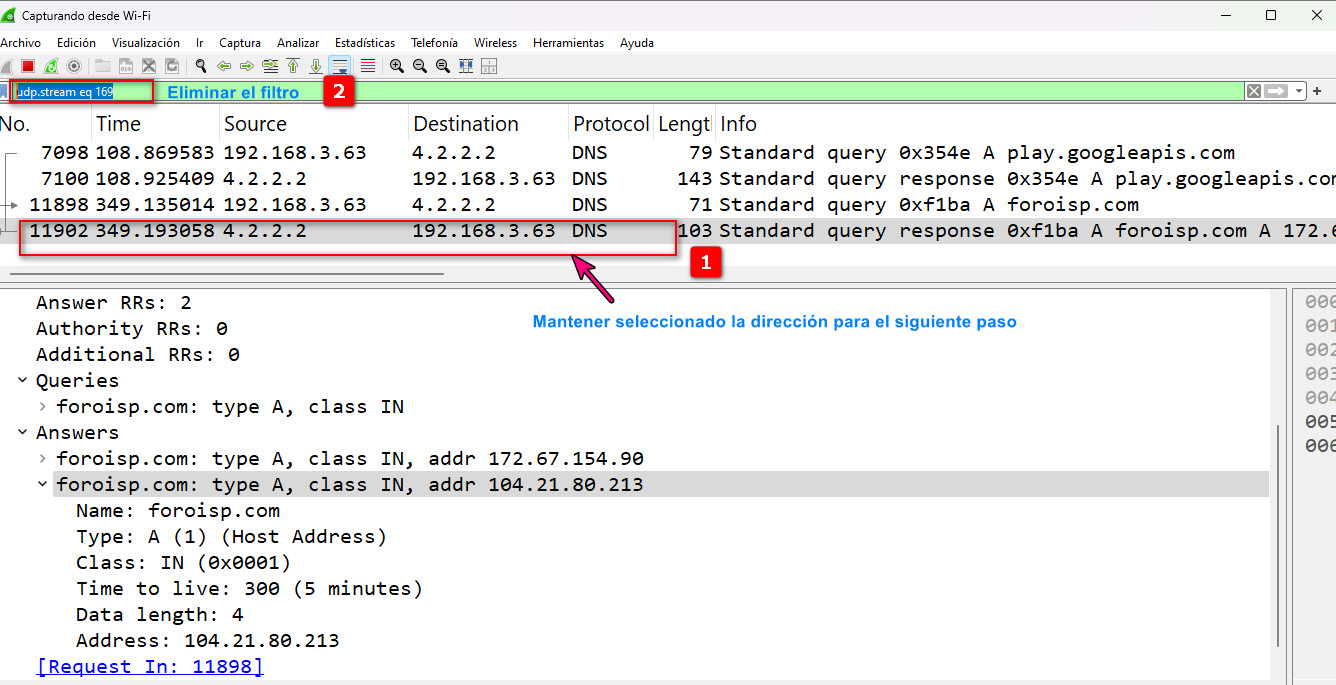 6 Aplicar el filtro para la conversación UDP