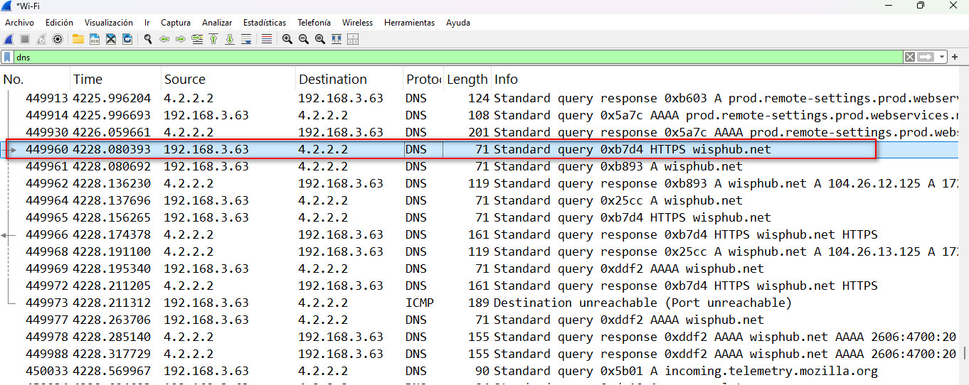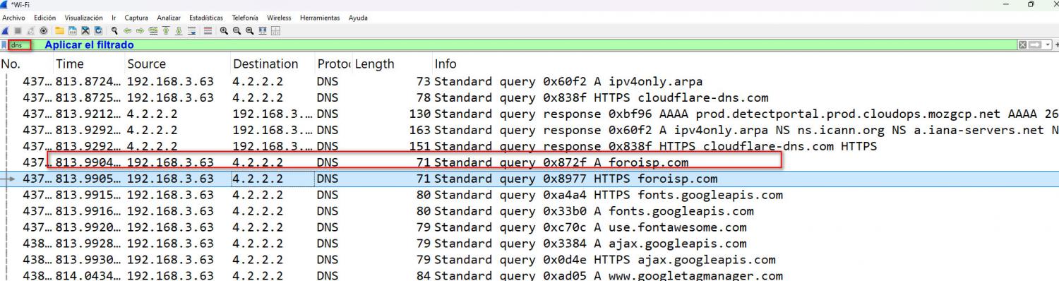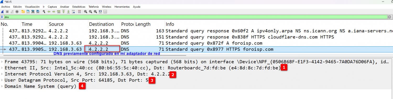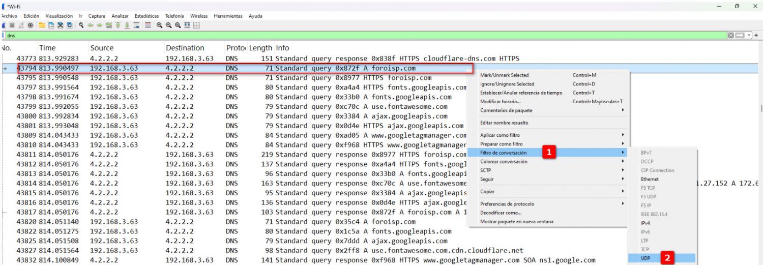 1.- Haremos un filtrado con la palabra dns dentro de winkshare.