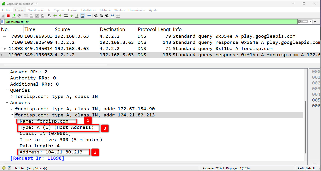 8A continuación veremos la respuesta que nos arroja el servidor DNS.