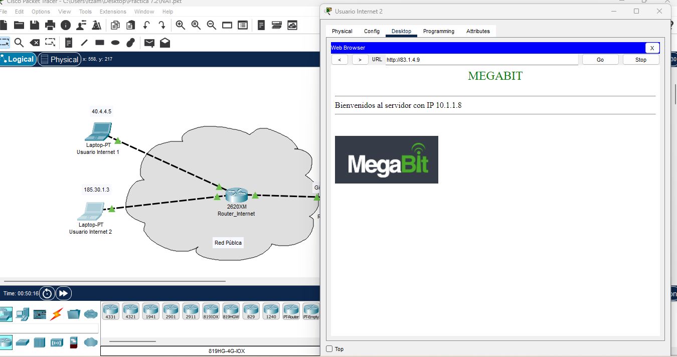 5Para que un usuario cuente con salida de Internet, se debe de atacar la dirección correspondiente al servidor la Dirección publica del servidor es la 83.1.4.9