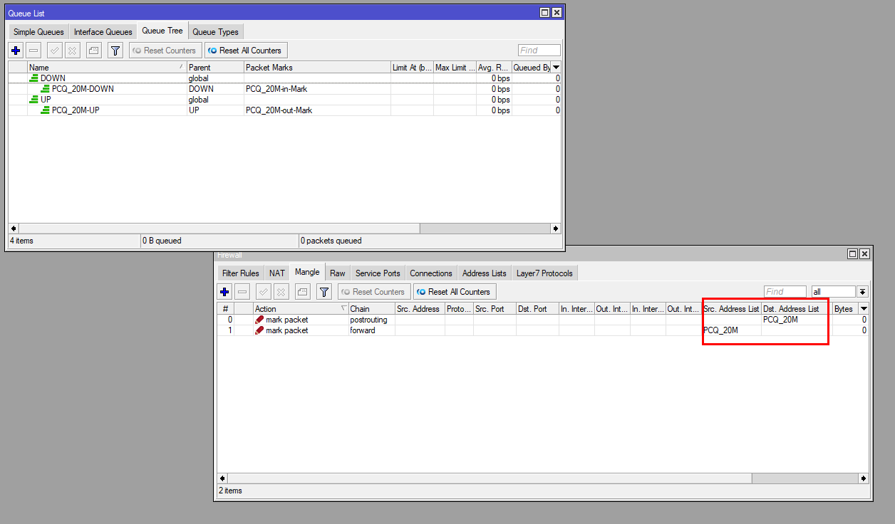 1Agregamos reglas de subida y de descarga en el mikrotik. Es importante agregar el nombre del address list que vamos a controlar en el mangle