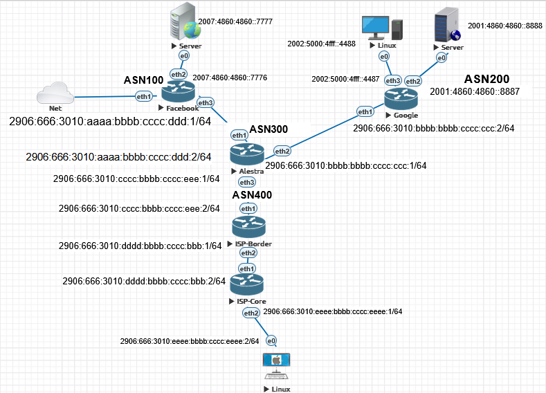 Este router se usa para simular comunicación hacia Facebook. Como el router tiene su propio ASN esta publicando el prefijo 2906:666:3010:aaaa::/64 mediante BGP.