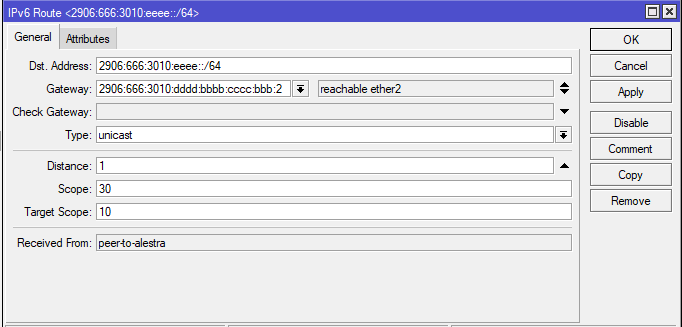 add address=2906:666:3010:bbbb:bbbb:cccc:ccc:2 advertise=no comment=to-Alestra \