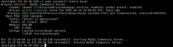 Si todo está bien, verás algo como: Active: active (running) Eso confirma que MySQL está corriendo.