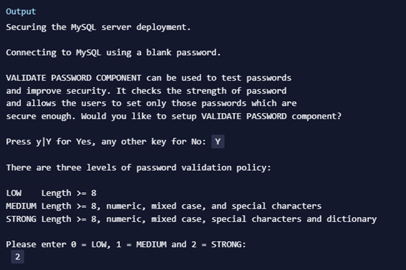 Te preguntará si deseas usar el VALIDATE PASSWORD PLUGIN (puedes decir No si no lo necesitas).