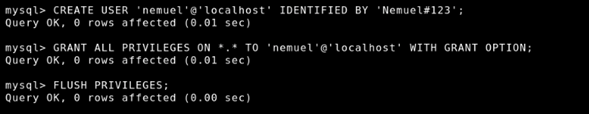 CREATE USER 'radius'@'localhost' IDENTIFIED BY 'Radius#123';