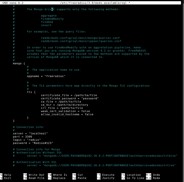 sudo nano /etc/freeradius/3.0/mods-available/sql