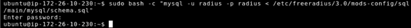 sudo bash -c "mysql -u radius -p radius < /etc/freeradius/3.0/mods-config/sql/main/mysql/schema.sql"