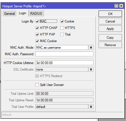 IP → Hotspot → Server Profiles → Login (pestaña Login)