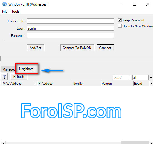 2 Abrimos la aplicacion y damos click en Neighbors para mostrar los equipos mikrotik
