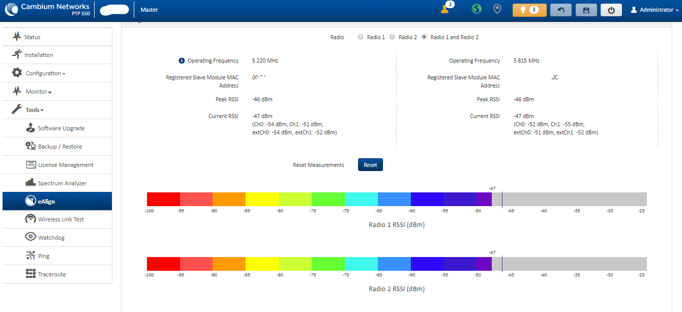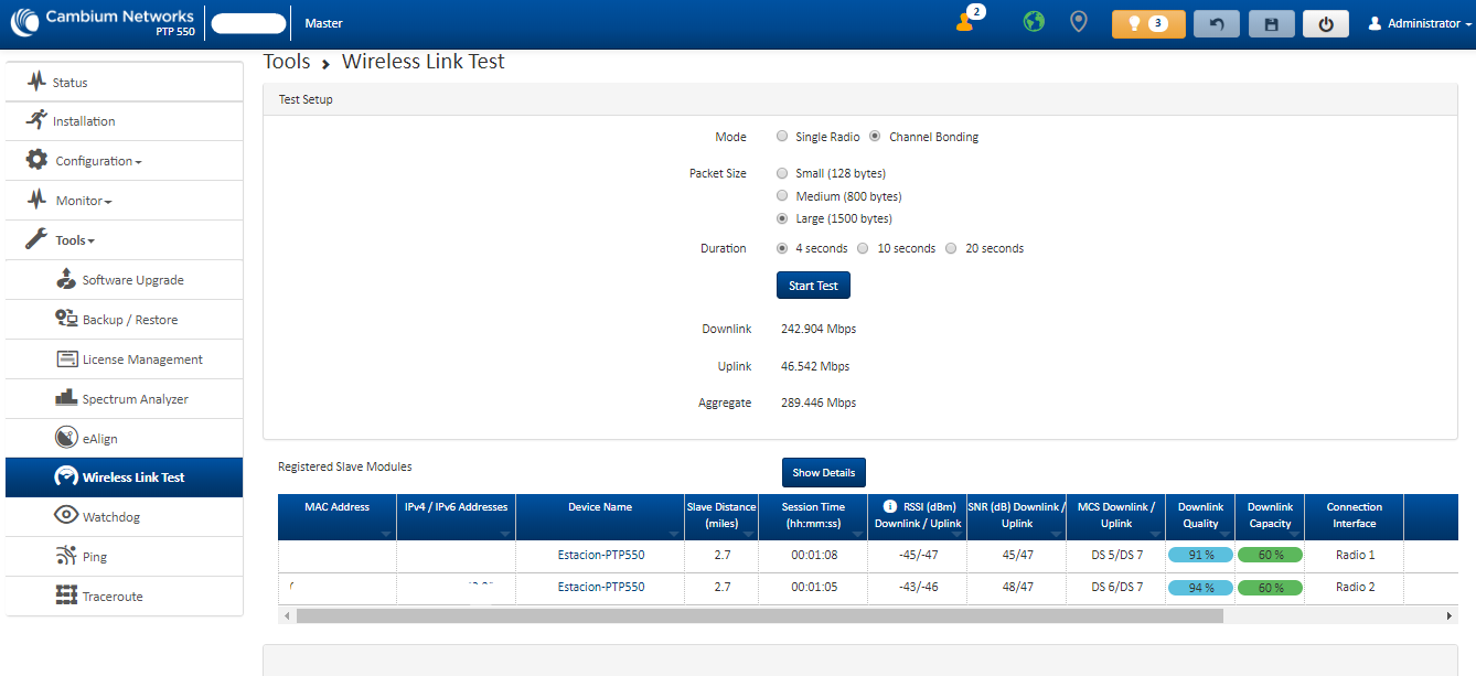 Enlace de 4.3 km PTP-550 con antenas jirous con resultado de 180 Mb