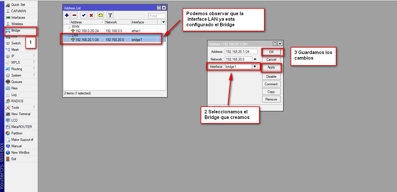 4 Una vez creado el bridge, debemos aplicar el cambio en IP Address List