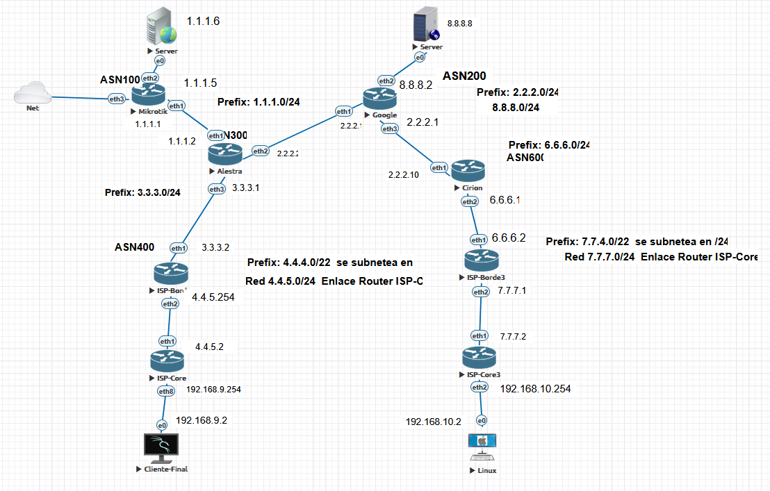 hacer sesión bgp Carrier cirion ASN600 solo con google, luego agregas ispborde 3, ispcore 3 y su laptop.